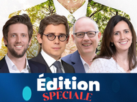 Antoine Petit (gérant obligataire crédit), Gaël des Prez de la Morlais (gérant action thématique), Arnaud Faller (directeur Général Délégué en charge des Investissements) et Noémie Hadjadj-Gomes (responsable de l'Investissement responsable des Méthodes et Solutions). En compagnie des experts de CPRAM dans l’émission "Et + Encore".